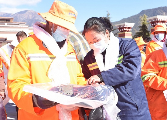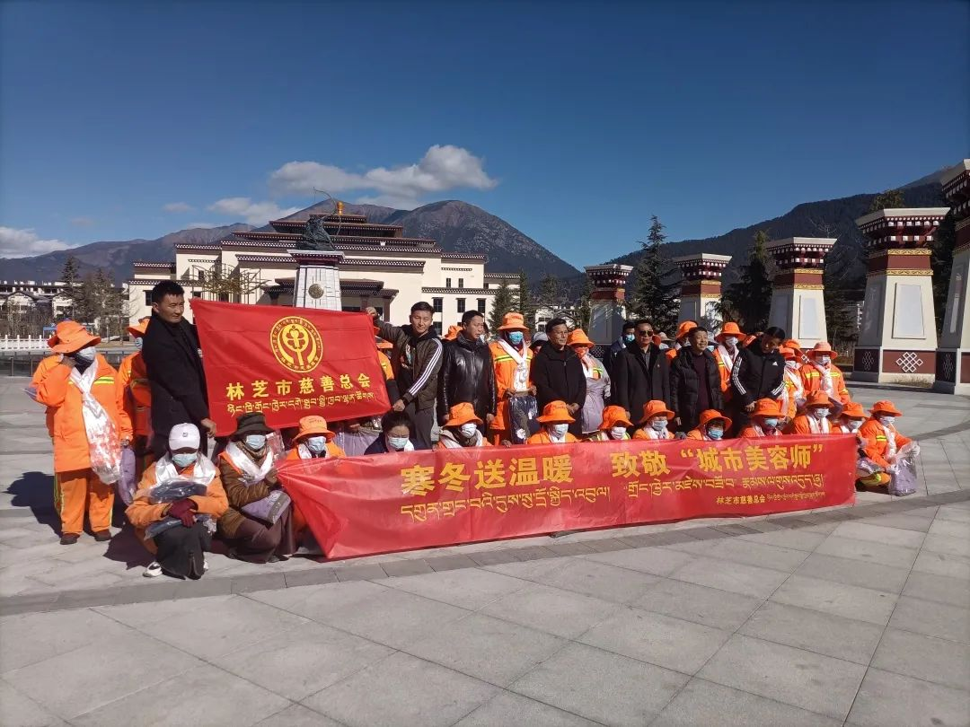 1月7日,為表達對國策一線環(huán)衛(wèi)工人的關(guān)懷和祝福,林芝市慈善總會在工布公園工布廣場開展了“寒冬送溫暖 致敬城市美容師”送冬衣活動。活動現(xiàn)場,市慈善總會工作人員為50名環(huán)衛(wèi)工人敬獻哈達,并送上慰問冬衣。