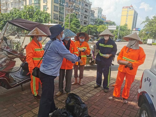 這不,國(guó)策環(huán)保東興子公司再次為五百余名環(huán)衛(wèi)工人送去消暑用品,積極做好一線(xiàn)環(huán)衛(wèi)工人的身心關(guān)懷及防暑降溫工作。